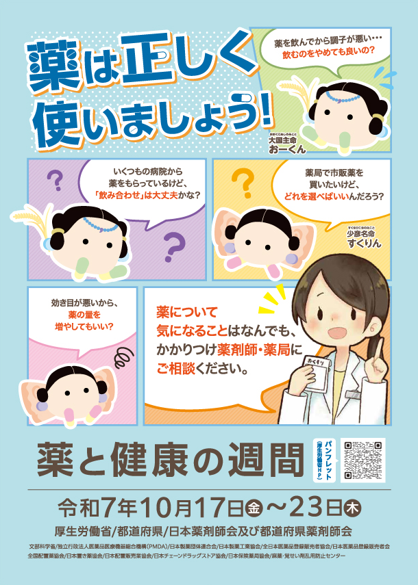 当社は、2025年10月17日(金)から10月23日(木)まで実施される「薬と健康の週間」において、厚生労働省、都道府県、日本薬剤師会および都道府県薬剤師会が主催する啓発活動に協力いたします。